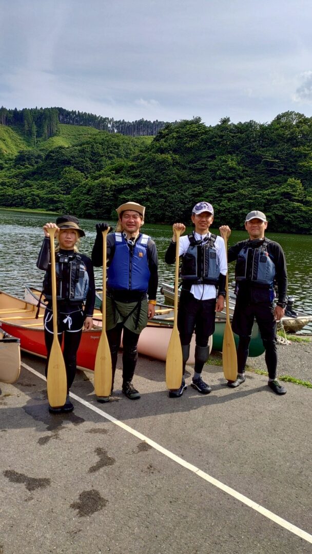 最初はぎこちないモノのカヌーは体感で乗るものと理解し、技術の練度を重ね最後には小山湖一周のトレイルをしました。